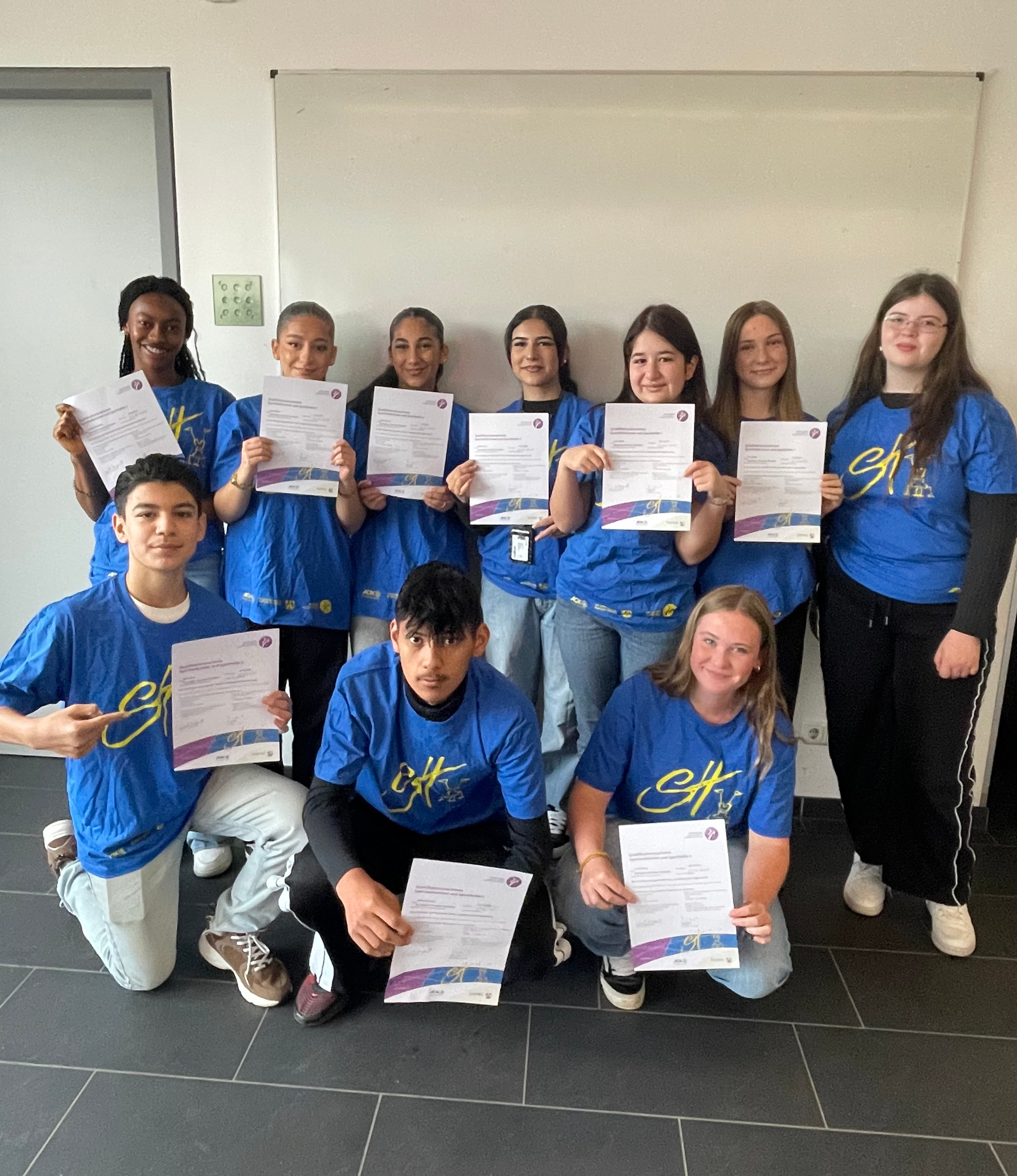 Nach viel Lernen und Arbeit konnten 10 Sporthelferinnen und Sporthelfer unserer Schule ihre Zertifikate über den erfolgreichen Abschluss der Sporthelferausbildung entgegennehmen. Während dieser Ausbildung wurden die Schülerinnen und Schüler von Frau Ziegler und Frau Kiepert für die sportliche Arbeit mit Kindergruppen fit gemacht.