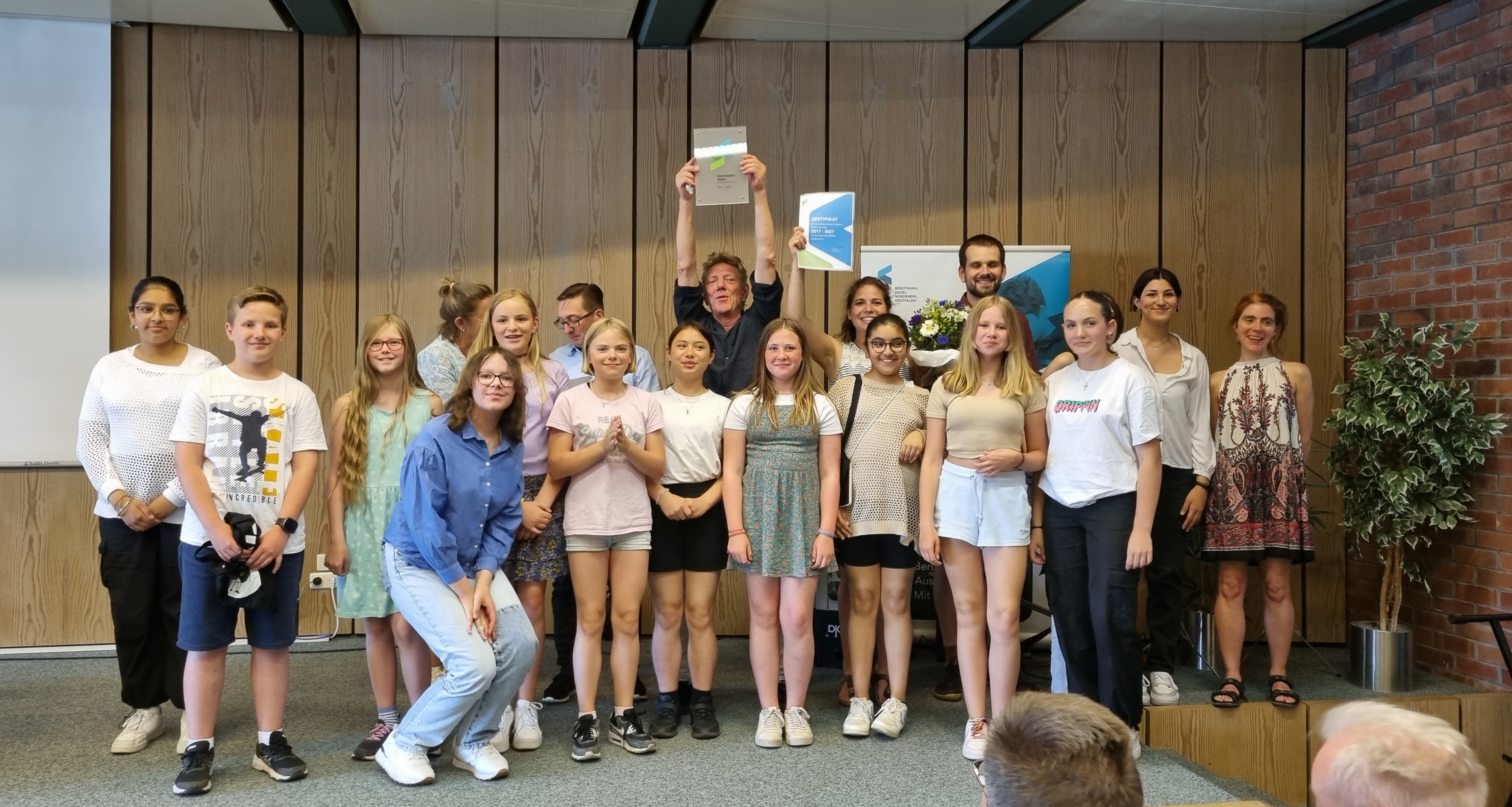 Bei der Preisverleihung am 15.06.2023 standen neben dem Berufsberatungsteam der Schule auch viele Schülerinnen und Schüler auf der Bühne. Die Musical-AG hat nämlich für die musikalische Unterhaltung beim Festakt gesorgt.